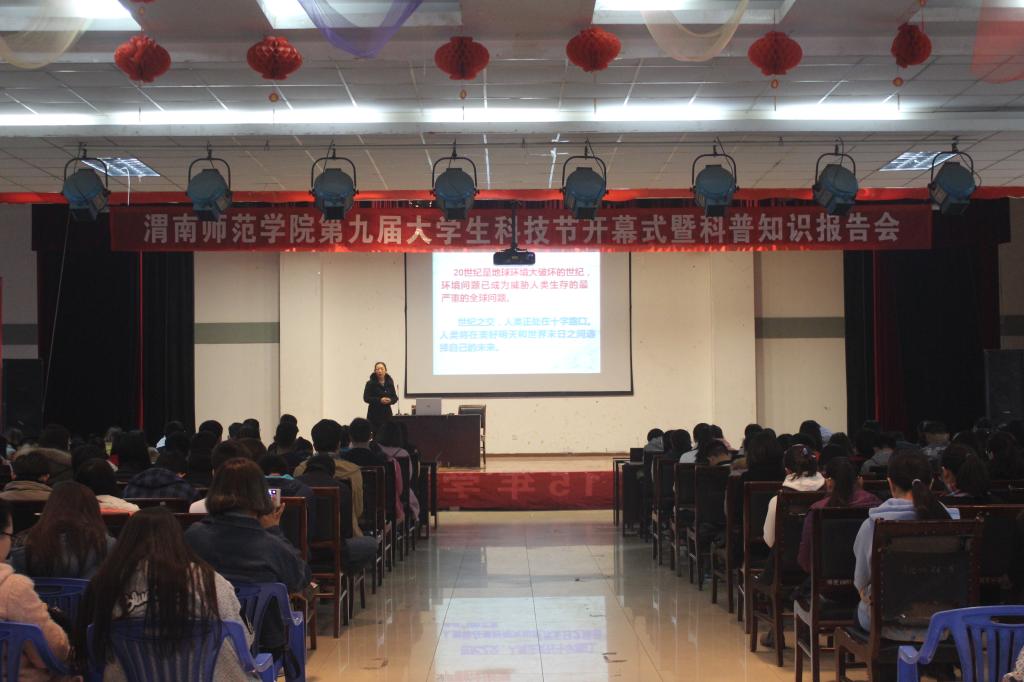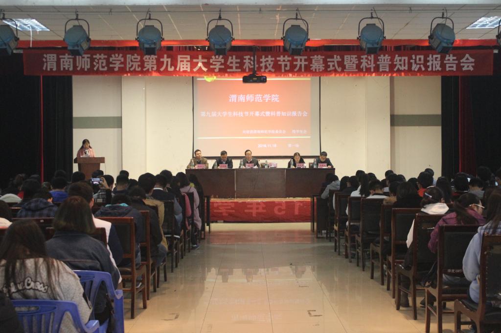 为了加强校园科技文化建设,促进大学生课外科技学术活动蓬勃发展,增强广大学生的科技创新意识,11月18日下午,伟德官网在一餐三楼举办第九届大学生科技节开幕式暨科普知识报告会。校党委委员、组织部部长杨小渭,学校学术委员会主任、教务处处长王菊霞,社科处处长李明敏,校团委副书记马耀斌出席活动,各二级学院学生代表400余人参加了此次活动。开幕式由校团委副书记姚明亮主持。
