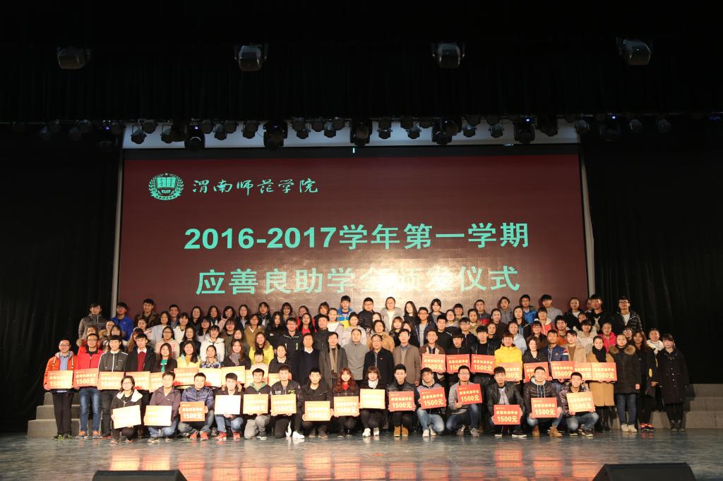 12月30日上午,学校在陶然楼演艺厅举行2016-2017学年第一学期“香港应善良助学金”颁发仪式。陕西省人民政府侨务办公室副调研员张海涛、渭南市人民政府侨务办公室主任刘建军、秘书长岳森、联络科科长吴笛,学工部部长王俊安、机关一总支书记、学工部副部长陈景西、学工部副部长田耿辉、各二级学院副书记、学工办主任、负责学生资助工作的辅导员及120位受助学生、部分学生代表等参加了颁发仪式。仪式由人武部部长、学工部副部长崔启主持。
