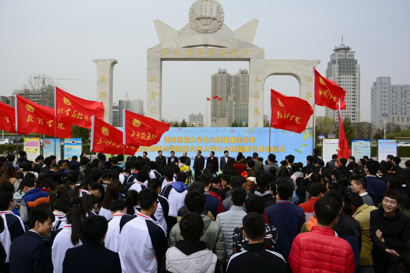 3月24日下午,渭南高校大学生心理健康活动季暨伟德国际1949官网第六届大学生心理健康节启动仪式在伟德官网渭华门前举行。伟德官网党委副书记赵伏友,党委委员杨小渭,校学工部部长王俊安、副部长陈景西、副部长崔启,校团委副书记姚明亮、大学生心理建康教育指导中心办公室主任梁崇科,渭南职业技术学院学工部部长罗峰、大学生心理健康教育中心主任孙战民,陕西铁路职业技术学院大学生心理健康教育中心主任赵智军,伟德官网二级学院(部)党总支副书记、专兼职辅导员以及三校学生代表600余人参加了启动仪式。仪式由学工部副部长田耿辉主持。