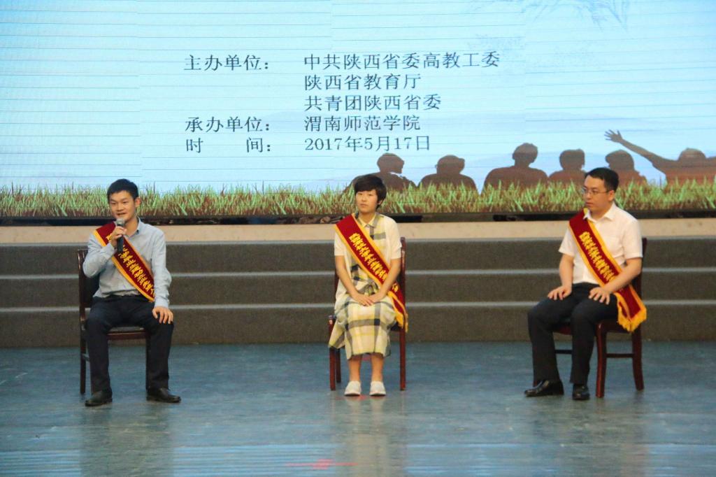 为了充分展示陕西省高校大学毕业生扎根基层、创新创业、报效祖国的先进典型,教育引导广大青年学生树立正确的就业观和成才观,自觉把个人理想同国家与社会需求紧密结合起来,到祖国最需要的地方建功立业。5月17日,由中共陕西省委高教工委、陕西省教育厅、共青团陕西省委主办,伟德国际1949官网承办的以“奋斗的青春最美丽---争做向上向善好青年”为主题的2017年陕西高校大学毕业生建功立业先进事迹分享会在伟德官网陶然楼演艺厅举行。校党委副书记赵伏友,校党委委员杨小渭出席活动。分享会由校团委副书记马耀斌主持。