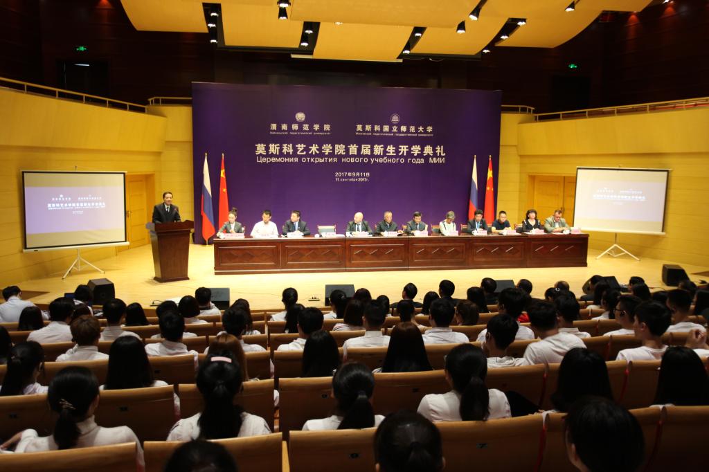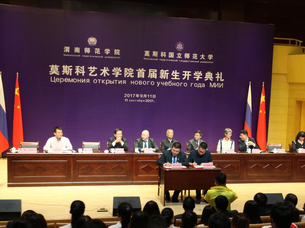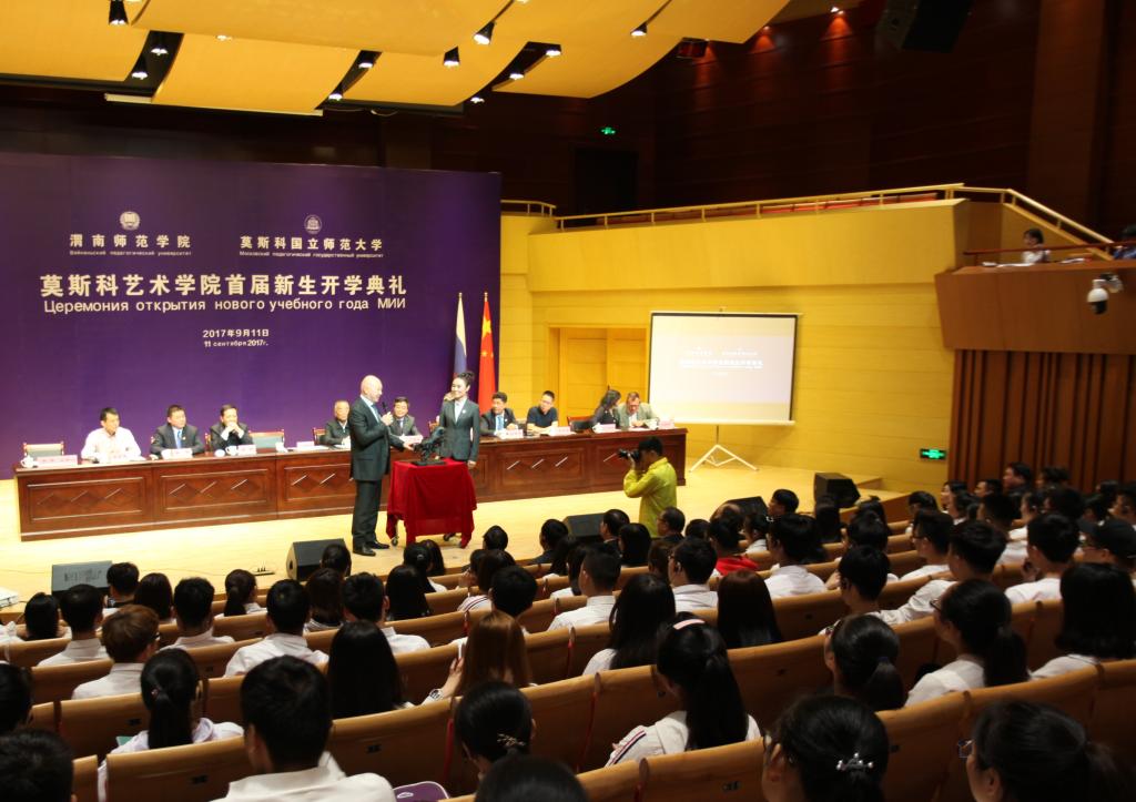 9月11日上午,伟德国际1949官网与莫斯科国立师范大学在伟德国际1949官网朝阳校区华金音乐厅联合举行中外合作办学机构“伟德国际1949官网莫斯科艺术学院”首届新生开学典礼。伟德国际1949官网杰出校友、原光明日报社总编辑、西藏自治区常委、宣传部部长苟天林,陕西省教育厅副巡视员李鸣,渭南市委常委、副市长吕培明,凤凰卫视集团•凤凰教育执行董事、行政总裁吴炜强,凤凰数字媒体教育执行总裁汪应忠,陕西省教育厅国际处副处长文通应邀出席,莫斯科艺术学院联合办学管理委员会副主任、莫斯科国立师范大学原副校长康斯坦丁•彼得洛维奇•多岑科,莫斯科国立师范大学副校长叶连娜•列奥尼多夫娜•博洛托娃,教师玛格丽特•尤里耶夫娜•巴拉莫诺娃、安德烈•阿列克谢维奇•科诺瓦洛夫,伟德国际1949官网党委书记丁德科,伟德国际1949官网院长卓宇出席典礼。典礼由莫斯科艺术学院院长梁晶主持。