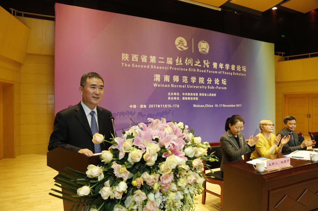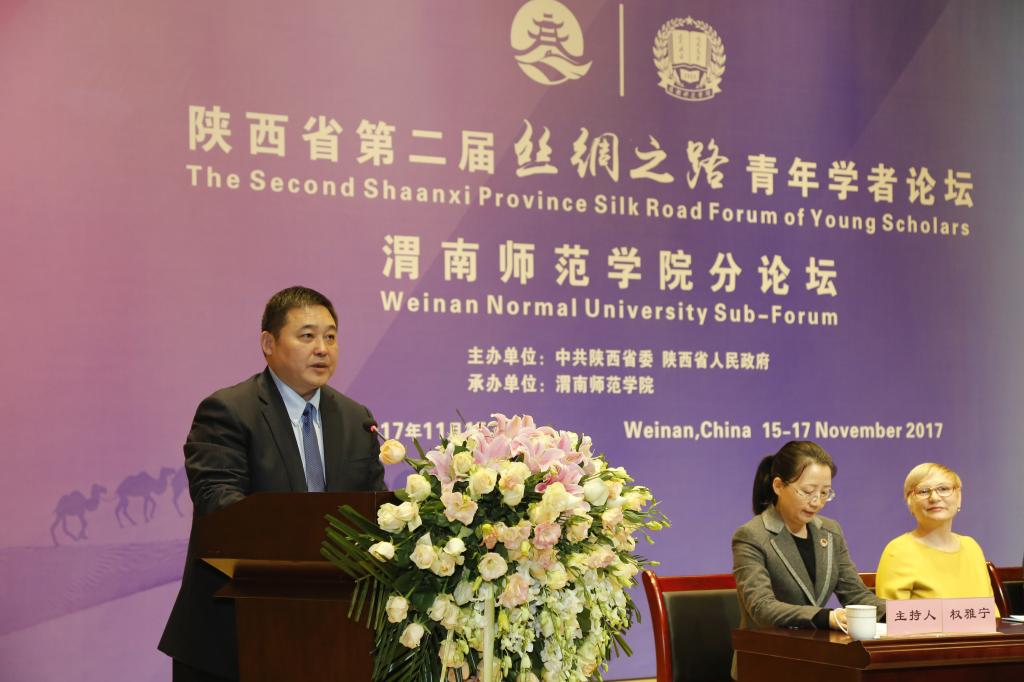 11月16日下午,陕西省第二届“丝绸之路青年学者论坛”分论坛在伟德国际1949官网逸夫楼华金音乐厅隆重开幕。来自俄罗斯、日本、泰国等50余名海内外青年学者,陕西省委组织部副巡视员魏永义,渭南市委常委、副市长吕培明,伟德国际1949官网校领导、伟德国际1949官网师生代表及新闻媒体记者等500余人参加了此次论坛,大会由伟德国际1949官网副院长权雅宁主持。