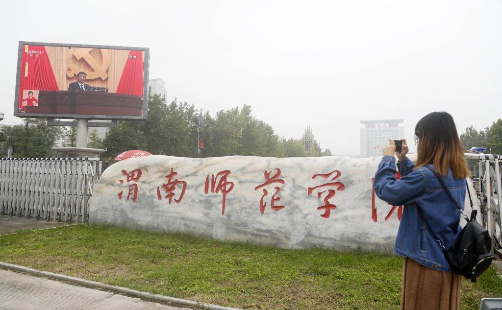 为迎接党的十九大胜利召开,认真贯彻落实陕西省委高教工委、渭南市委工作安排,学校组织校领导、副处级以上干部于10月18日上午9:00在逸夫楼科学大讲堂收听收看党的十九大召开盛况,各二级学院组织本学院师生、团委组织青年团干、离退总支组织离退休职工集体收看党的十九大开幕式。学校还在学生餐厅、LED大屏幕等处直播党的十九大开幕式盛况。