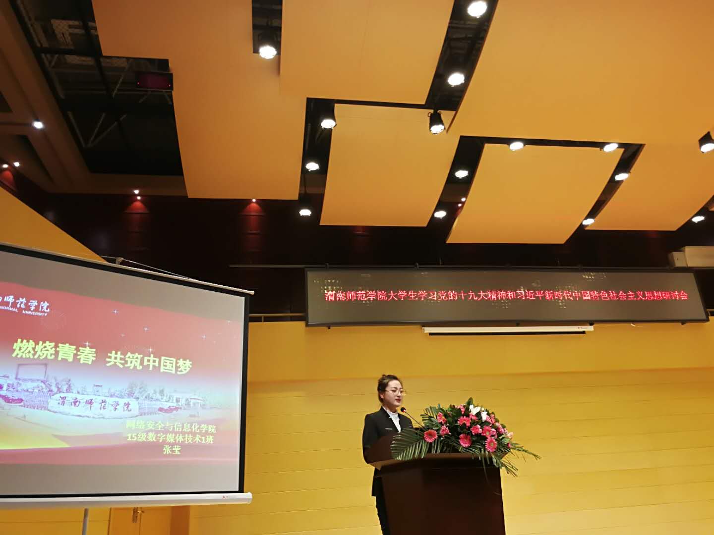 随后,14位学生代表依次上台,结合个人学习党的十九大精神和习近平新时代中国特色社会主义思想的体会与收获,联系国家进步、社会发展、学校和个人学习生活实际等,在大会上进行了交流发言。