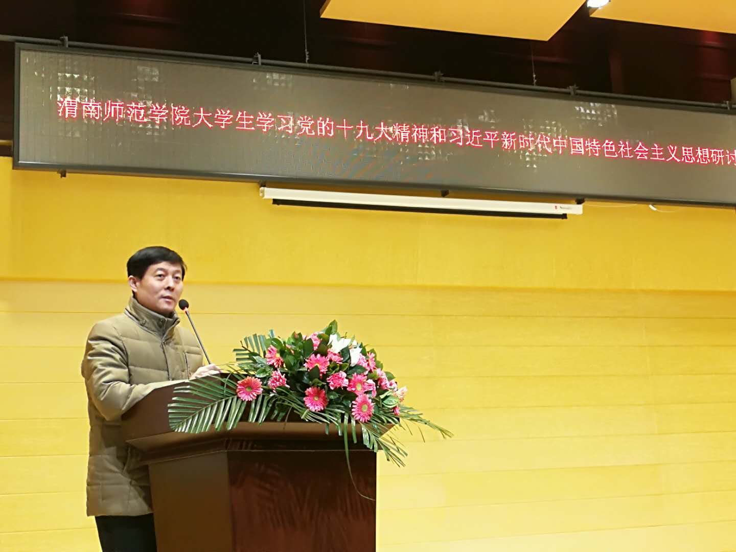 2018年1月3日下午,伟德官网“大学生学习党的十九大精神和习近平新时代中国特色社会主义思想研讨会”在华金音乐厅隆重召开。学校党委书记丁德科、党委副书记任健、党委委员、副院长李海龙出席会议,学校宣传部、学工部、人武部、团委等部门负责人,各二级学院分党委、党总支书记、副书记、学工办主任、学生党支部书记、专兼职辅导员,以及学生干部、学生党员、入党积极分子代表共500余人参加大会。会议由学工部部长王俊安主持。