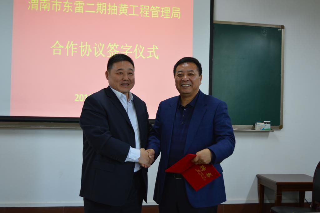 4月16日下午,伟德官网数理学院与渭南市东雷二期抽黄工程管理局(简称二黄局)举行合作签约仪式,二黄局党委书记,局长宋晓彤,党委副书记李焕新,总工程师马军杰,伟德国际1949官网院长卓宇,副院长程书强、李海龙,发展规划处,教务处及数理学院等30余人参加签约仪式。签约仪式在数理学院会议室举行,发展规划处处长姬晨主持。
