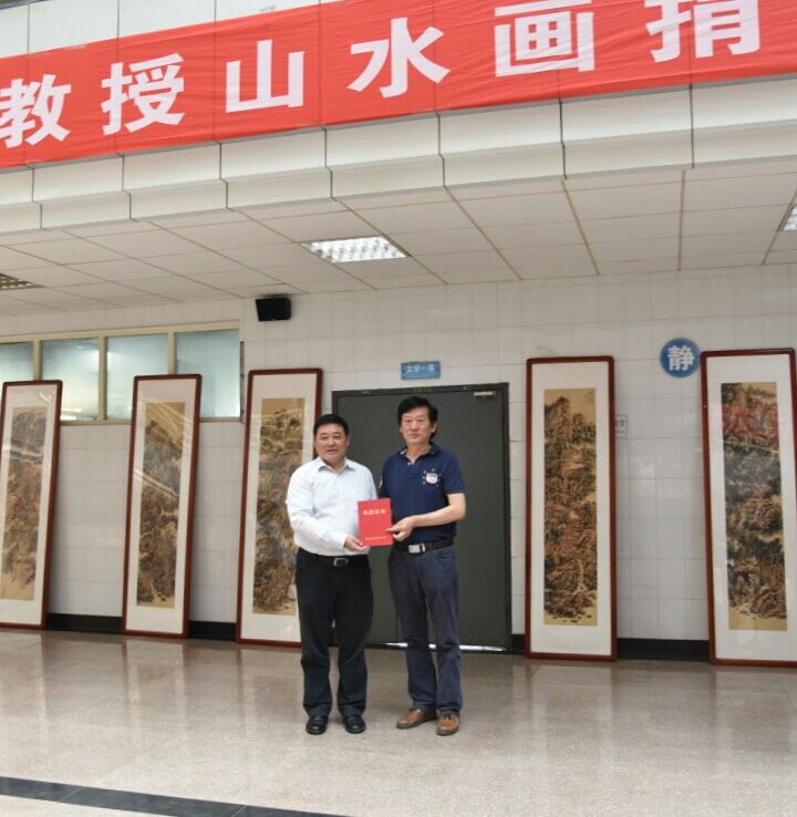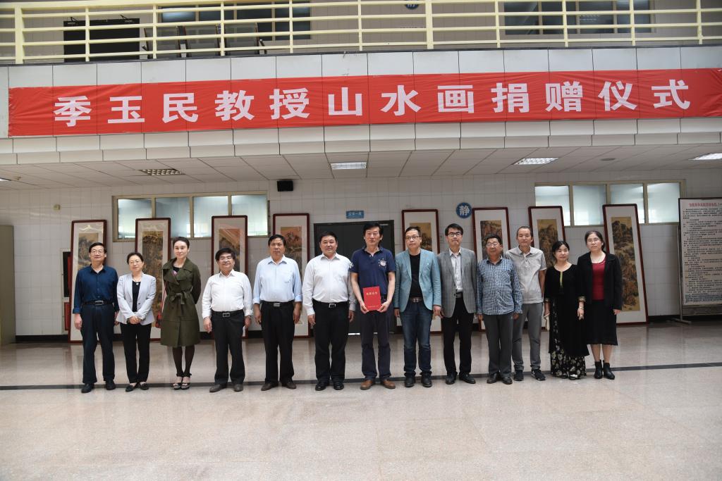 5月7日下午,季玉民教授山水画捐赠仪式在图书馆二楼大厅举行。院长卓宇应邀出席仪式并代表学院向季教授颁发了捐赠证书,副院长李海龙代表学院讲话。仪式由图书馆馆长王双喜主持。