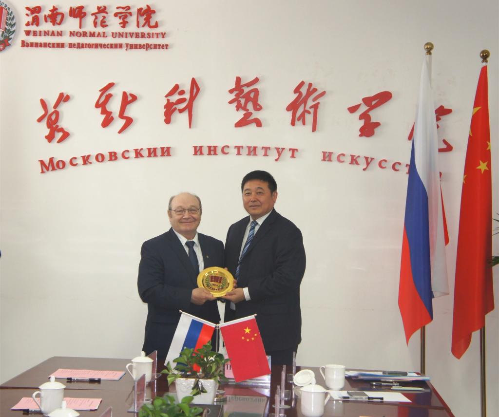 5月11日下午,阿穆尔共青城市市长克里莫夫、阿穆尔国立人文师范大学副校长科什金一行来伟德官网参访交流。渭南市政府副秘书长李晓京、渭南市城投集团总经理闫忠民,伟德国际1949官网院长卓宇、副院长李海龙、院长助理韩小卫、国际合作与交流处处长杜百顺、丝绸之路艺术学院党委书记季玉民等有关领导陪同参观并召开座谈会。