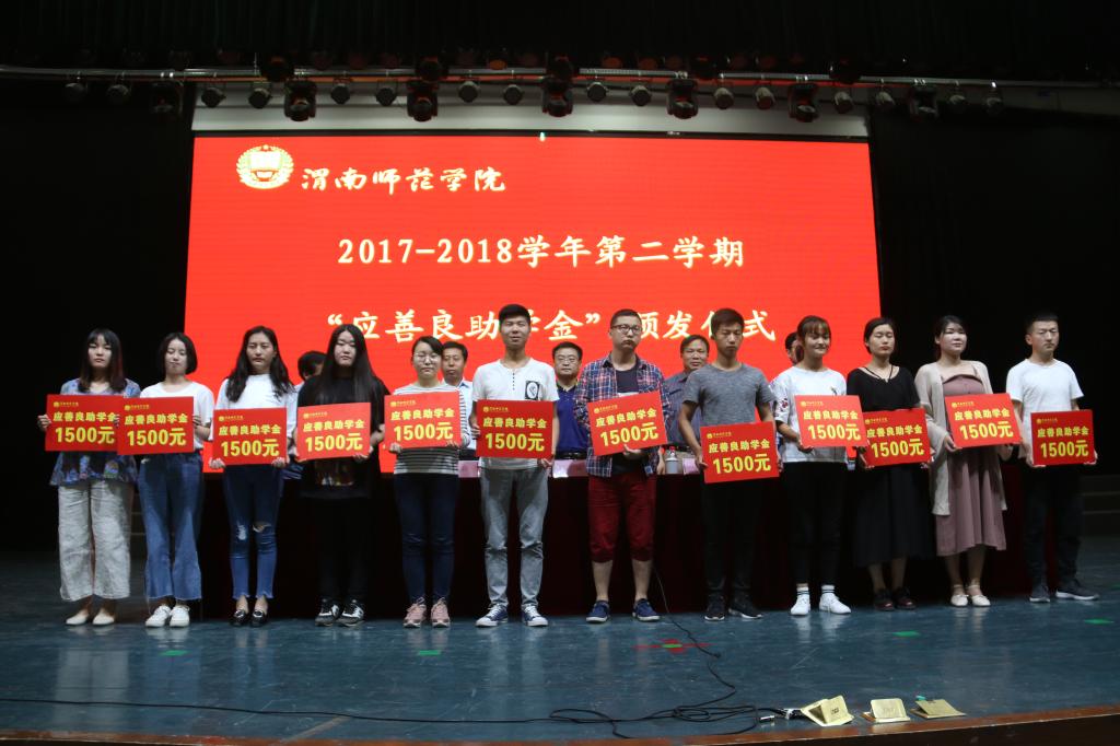 5月24日下午,学校在陶然楼演艺厅举行2017-2018学年第二学期“香港应善良助学金”颁发仪式。陕西省人民政府侨务办公室侨政处处长汪斌、渭南市人民政府侨务办公室秘书长岳森等一行四人,伟德官网副院长李海龙,学工部领导,各二级学院副书记,学工办主任,负责学生资助工作的辅导员及120位受助学生、部分学生代表等参加了颁发仪式。仪式由学工部部长王俊安主持。
