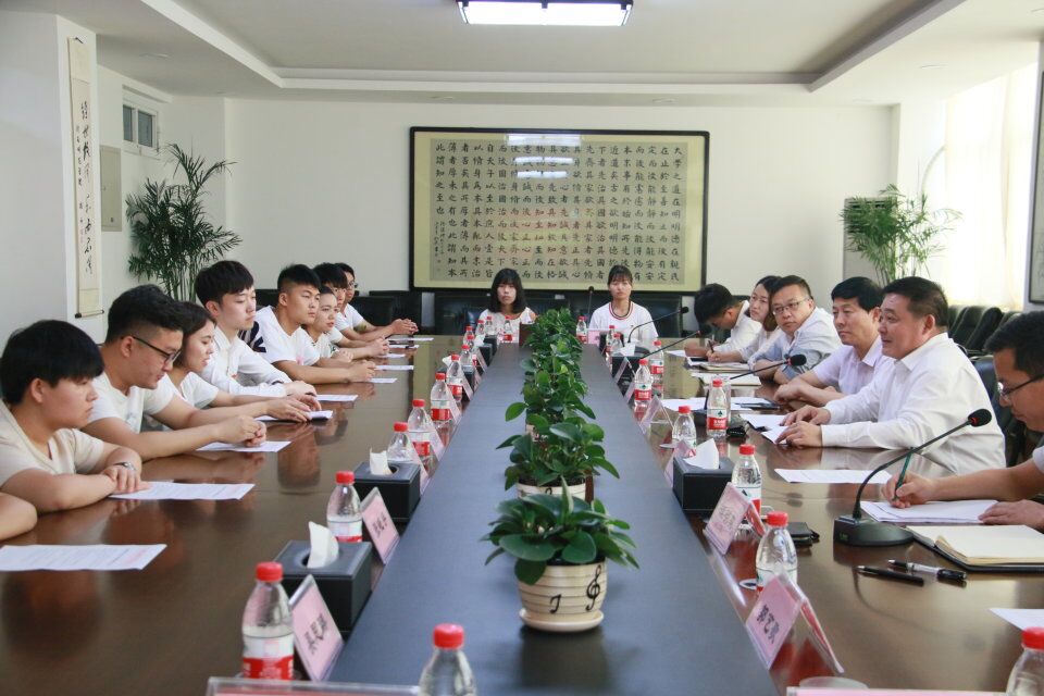座谈会上,佩戴着胸花的西部计划志愿者们分别做了自我介绍,并详细向学校领导汇报了自己志愿服务西部的岗位情况。学校西部计划项目办郭艺歌汇报伟德官网2018年西部计划工作情况。