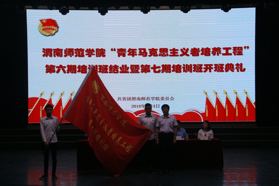 仪式开始前,与会师生在《强国一代有我在》的励志歌曲声中共同观看《我的“青马”岁月--“青马”六期活动纪实》视频剪辑。仪式正式开始,与会师生全体起立唱国歌。王俊安宣读了《关于同意伟德国际1949官网“青年马克思主义者培养工程”第六期培训班学员结业的决定》,“青马”六期标兵学员10人,优秀学员15人,良好学员47人,合格学员58人。与会领导为“青马”六期标兵学员颁发荣誉证书、为“青马”六期优秀学员代表颁发结业证书。游学民宣读了《伟德国际1949官网“青年马克思主义者培养工程”实施方案》,明确了“青马”工程的培养目标、原则、内容和考核标准。校党委副书记任健为“青马”七期授旗。“青马”六期钱浩同学代表六期学员做总结汇报,回顾了一年的“青马”学习实践经历,分享了自己的感受和收获,展示出六期学员的成长和进步。七期学员选拔考试成绩第一名的彭妍同学代表新学员从坚定理想、潜心学习、学以致用、遵守纪律几个方面作表态发言,也让大家对未来一年七期“青马”学员们的表现充满期待。