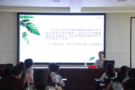 下午,陕西省优秀教学能手郭晓辉老师做了题为“做学生灵魂的摆渡人”的报告,从班主任的日常工作内容做切入点,定位班主任角色、实施班主任职责,用案例分析了一个好的班主任应该如何带好一个班。在报告中,郭晓辉老师指出了班主任角色定位时常见的几个误区——单纯强调师道尊严、什么事都自己干、不能协调家长与学生的关系、厚此薄彼,不公平等。她认为,要做心态好的班主任,在百忙中学会调节自己的心态,学会科学管理班级,以规范促养成、由做事教做人、文化濡染灵性、活动锻塑人格。最后,郭晓辉向大家分享了与家长、任课老师相处的一些注意事项,以及给班主任的一些建议,提倡班主任要学会爱自己的班级,用积极的心态迎接每一天。