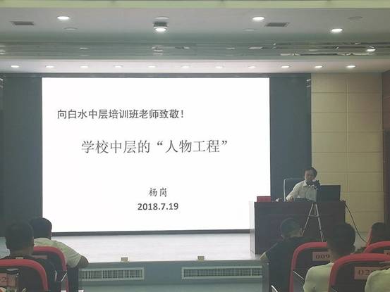 19日上午,伟德国际1949官网教授、国培首席专家杨岗作了《学校中层的“人物工程”》主题报告,他为学员们分享了自己以及初中校长的故事,通过李小龙的名言告诫大家要刻苦训练,才能收获成功。杨老师从对中层干部的基本要求、人物工程、智慧分析、关于“中层”的几个话题展开论述,表示中层干部要有培训能力,参训学习要有“精气神”。