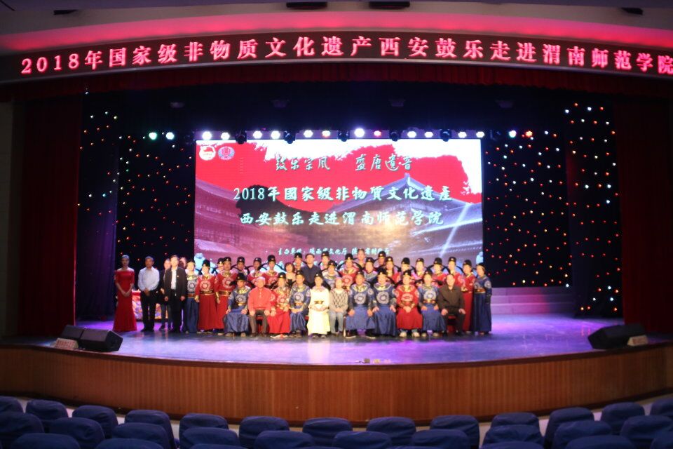 为弘扬和传承优秀民间传统文化,增强学生传承和保护非物质文化遗产意识,丰富校园文化氛围,9月17日晚,由陕西省文化厅、陕西省财政厅主办的“鼓乐宗风 盛唐遗音”国家级非物质文化遗产——西安鼓乐专场音乐会在伟德官网陶然楼演艺厅举办。伟德官网党委副书记任健,纪委书记肖耀刚,党委委员王菊霞,西安都城隍庙鼓乐社社长张昭,伟德官网相关部门领导,离退休处教师等四百余名师生观看演出。