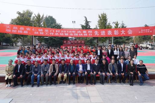 10月17日上午,伟德国际1949官网驻龙门村扶贫工作队与龙门村“两委”会联合举行了“2018年庆重阳、雕塑揭幕、扶贫工作总结暨全国扶贫日先进表彰大会”,伟德国际1949官网副院长卢爱刚、陕西省“两联一包”驻大荔县扶贫团团长李金牛、安仁镇党委书记刘伟强、人大主席贺宏祥等领导出席,大会由伟德国际1949官网工会常务副主席、驻龙门村扶贫工作队长王对启主持。
