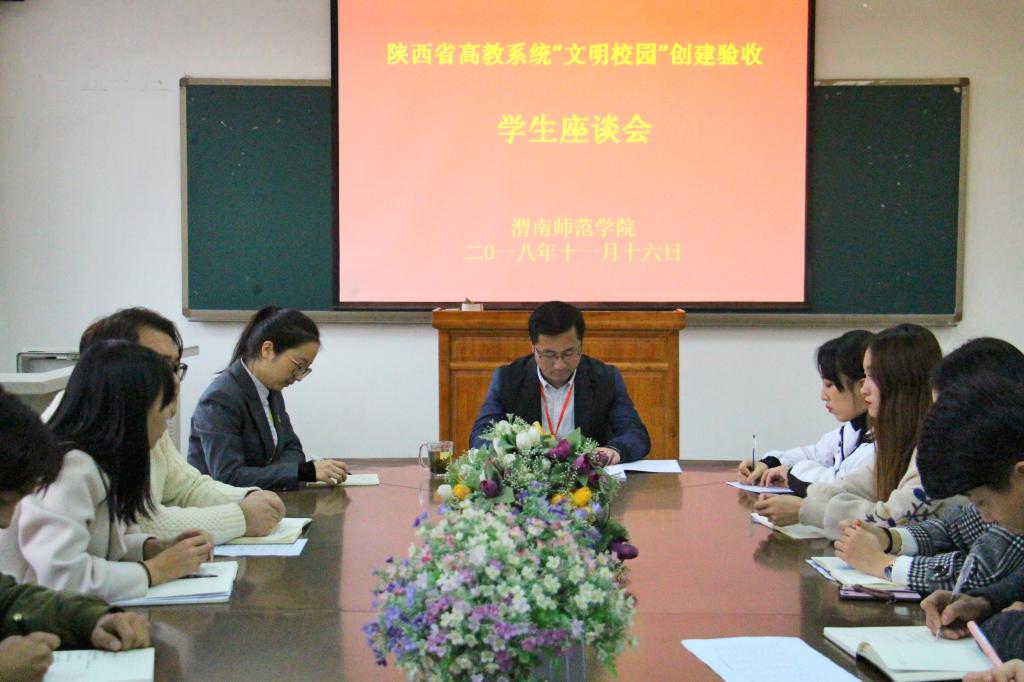 党委副书记任健代表学校从强化班子建设保障有力、强化思想政治教育学习引领、强化良好道德风尚榜样示范、强化特色校园文化价值引领、强化和谐校园环境人文理念、强化各类阵地服务理念、强化创建工作长效机制等方面向专家组做了重点汇报。他表示,学校高度重视“文明校园”创建工作,坚持将精神文明建设和事业发展结合起来,与学校各项工作一同部署,一同推进,一同检查,以精神文明建设凝聚师生力量,汇聚促进学校发展的强大动力。作为省属地方师范院校,学校坚持立德树人根本任务,传承并不断凝练学校精神文化,并以此为激励力量,综合实力和社会声誉逐步提升。