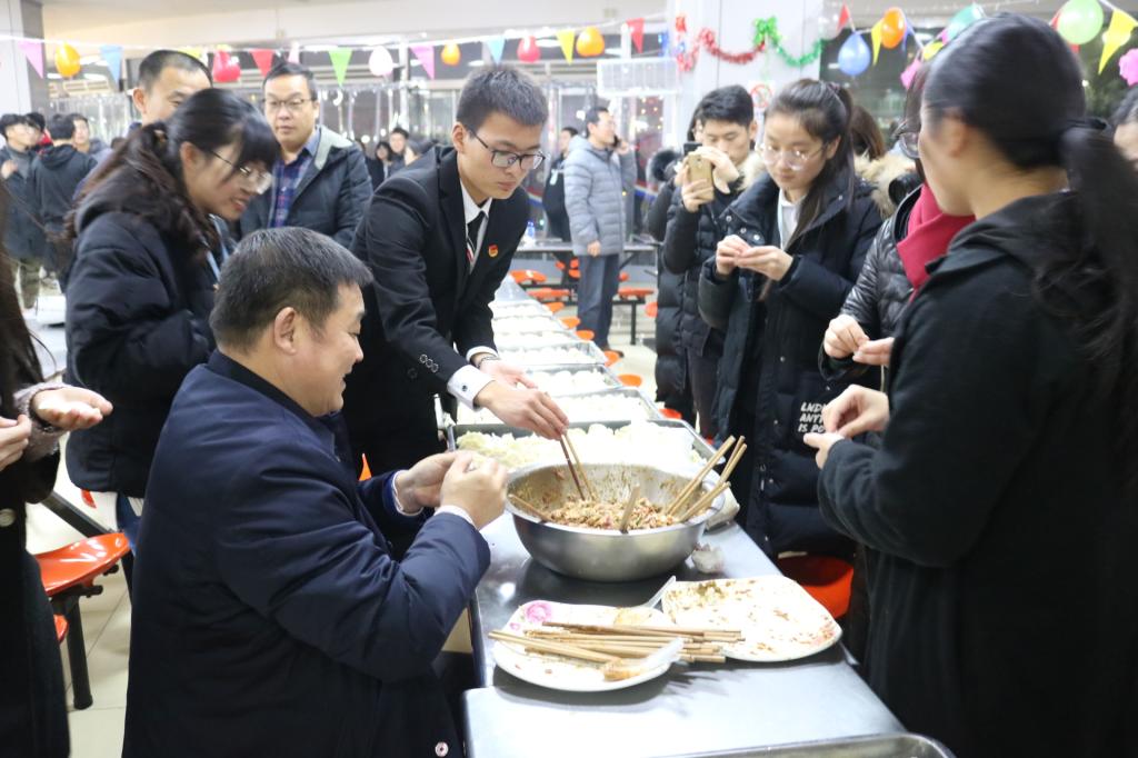 下午6点左右,卓宇校长出现在活动现场,“同学们平时在家包过饺子吗?”同学们顺着话音抬头,又惊又喜。看着盘子里各式各样的“创意”饺子,卓校长现场给大家演示了传统饺子的包法。一边包,一边了解同学们学习上生活上有什么困难。他说到,学校非常关心学生的成长,尤其是家庭经济困难学生,学习生活中有什么不适应的地方,有什么困难给老师说,给学院领导说,给他说。