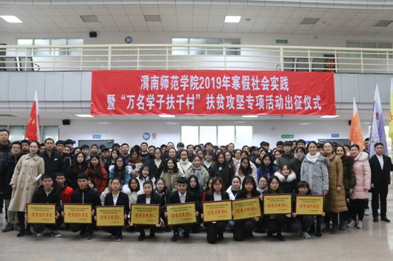 为深入学习习近平新时代中国特色社会主义思想和党的十九大精神,扎实推进伟德官网脱贫攻坚工作。1月10日下午,伟德官网在福慧图书馆举行主题为“青年大学习 青年新作为 建功新时代”的2019年寒假社会实践暨“万名学子扶千村”脱贫攻坚专项活动出征仪式。校党委副书记任健,学工部部长王俊安,宣传部部长李明敏,校团委副书记姚明亮,校团委办公室主任刘娟宁出席出征仪式,各二级学院主管学生工作领导、团总支书记和实践队负责人及队员200余人参加,出征仪式由校团委干部肖飞主持。