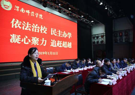 报告指出,2018年是学校进一步规范办学行为、强化教学中心地位、追赶超越发展进程中不平凡的一年,在广大教职员工的共同努力下,学校全面深化改革创新,全面加强内涵发展,实现了各项工作的健康有序推进。一年来,学校精心组织开展了四件大事:一是加强思想引领,凝聚发展共识;二是重审办学定位,明确发展思路;三是狠抓评估整改,启动专业认证;四是落实1号文件,强化校地合作。着力抓好八个方面工作:着力加强新时代党建工作,着力提升人才培养质量,着力推进学科建设,着力强化师资队伍建设,着力做好学生管理服务工作,着力深化国际交流与合作,着力做好扶贫工作,着力提升服务保障水平。