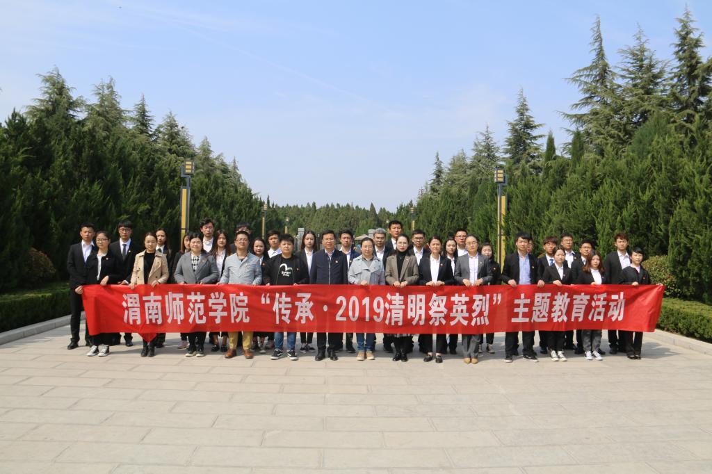 在新中国成立70周年、《中华人民共和国英雄烈士保护法》颁布实施一周年之际,为铭记为实现中华民族伟大复兴作出卓越贡献的革命先辈,激励和引领伟德官网广大团员青年弘扬以爱国主义为核心的伟大民族精神,投身新时代夺取中国特色社会主义伟大胜利的新征程。4月3日,校团委组织伟德官网专职团干部、青马班学员代表、学生干部代表、学生代表45人赴富平县爱国主义教育基地开展“传承·2019清明祭英烈”主题教育活动暨“青春心向党 建功新时代”主题清明祭扫活动。