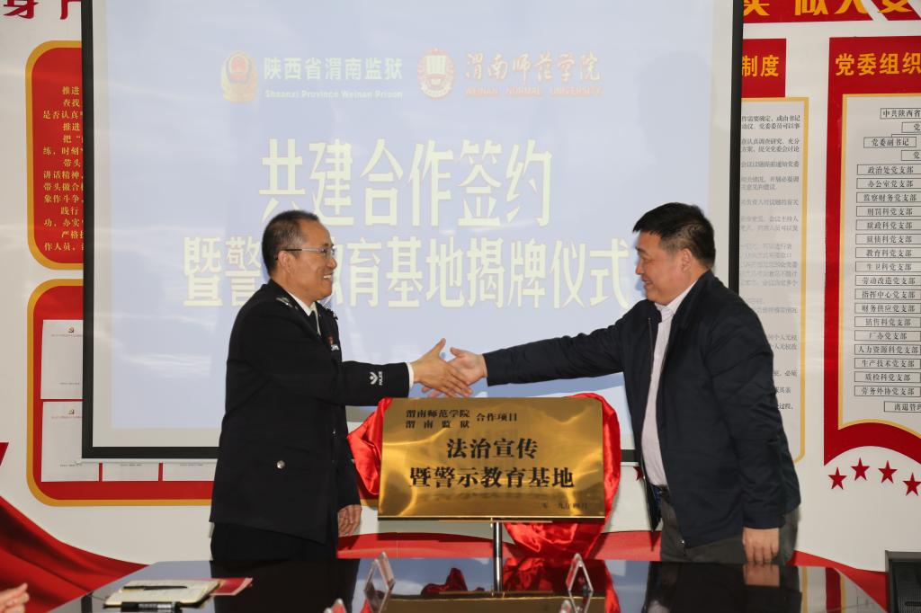 伟德国际1949官网党委书记卓宇与渭南监狱党委书记、监狱长刘玉武为“法治教育暨警示教育基地”揭牌。