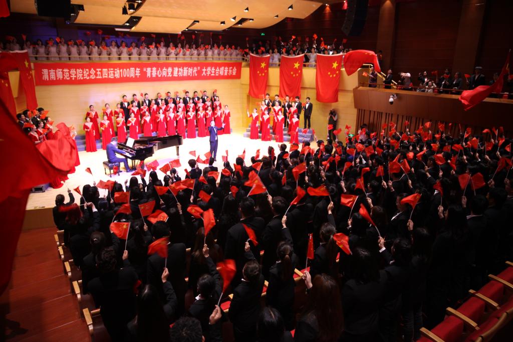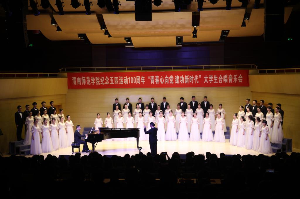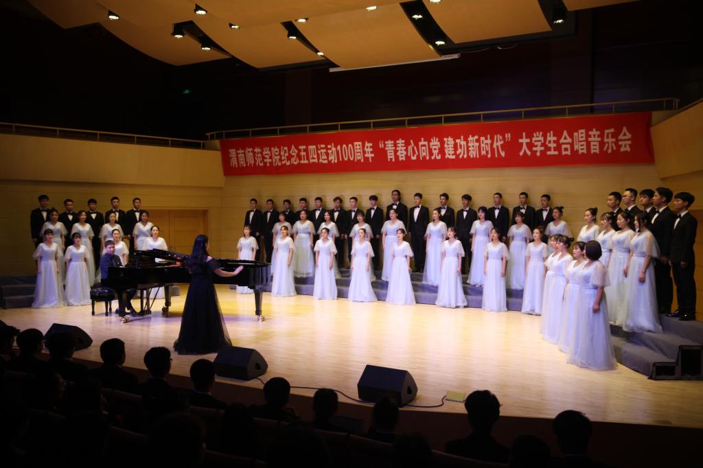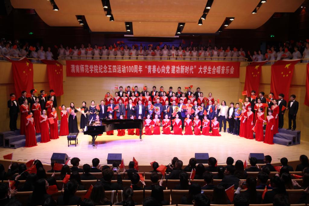 为了纪念五四运动100周年、献礼祖国华诞70周年。4月29日晚,由校团委主办,音乐学院、莫斯科艺术学院承办的纪念五四运动100周年“青春心向党建功新时代”大学生合唱音乐会在华金音乐厅举办。伟德官网党政主要领导,渭南团市委书记出席活动,学校师生代表500余人共同观看了演出。由189名渭师青年组成的三支合唱团,用青年人的激情、热情与对国家、民族、人民的深情,用坚定的理想信念,歌颂新时代,为祖国唱响青春的赞歌!