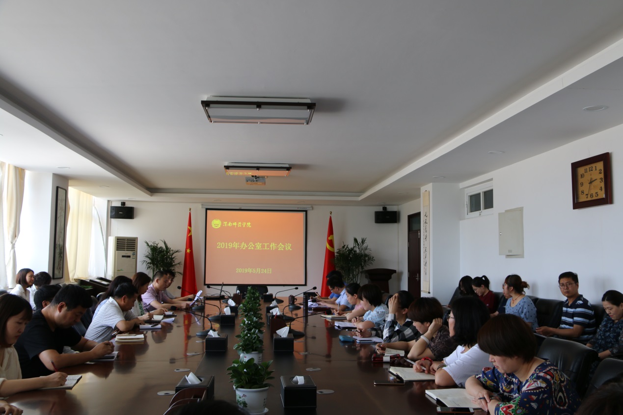 5月24日下午,伟德官网在厚德楼四楼第二会议室召开2019年办公室工作会议。党委委员、校长助理韩小卫,稳定安全办公室主任、党政办公室副主任李铁丁,党政办公室副主任张勤恳,党政办公室全体工作人员和各单位办公室业务负责人参加了会议。会议由党政办公室副主任郭石磊主持。