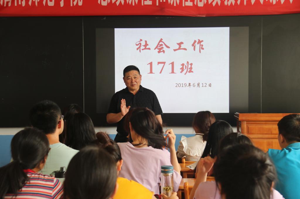 6月12日下午,校党委书记卓宇以“中美贸易摩擦面面观”为题,为马克思主义学院17级社工专业学生上了一堂生动的思政课。