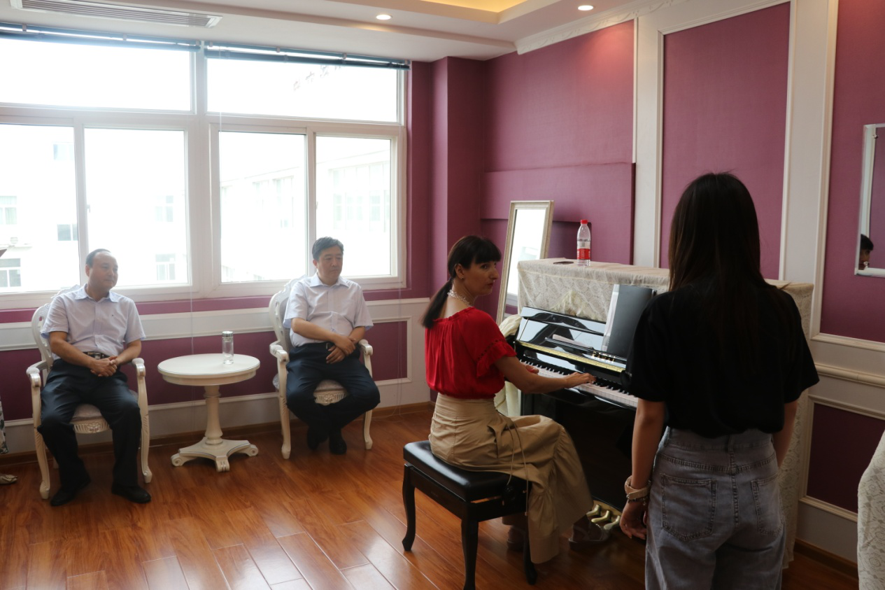 赵曼一行先后深入学前教育和声乐教学课堂,现场与外教和学生进行交流沟通。赵曼对莫艺近期的各项工作表示满意,并指出,来伟德官网工作的俄方教师,教学经验丰富,方法新颖,学生能够近距离与外教沟通,机会难得,希望学生们能够珍惜机会,好好学习,为实现自己的目标不断奋斗。随后,赵曼一行还深入到留学生中心和外教自助餐厅,了解外教住宿条件及饮食情况,对学校保障外教的生活条件给予肯定。