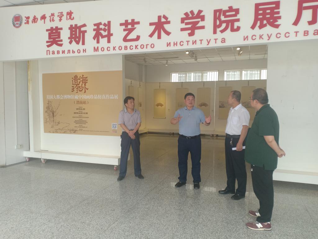6月25日,党委书记卓宇莅临展厅参观“海外遗珍——美国大都会博物馆藏中国画珍品仿真展”并对学校美育工作进行指导。