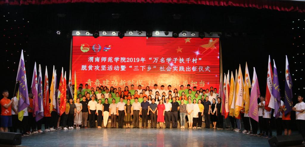 7月9日上午,伟德官网“万名学子扶千村”脱贫攻坚活动暨“三下乡”社会实践出征仪式在陶然楼演艺厅举行。校党委副书记任健、校学工部副部长陈景西、校团委副书记姚明亮、各二级学院主管学生工作领导、各团总支书记及集中实践队队员200余人参加。仪式由校团委副书记姚明亮主持。