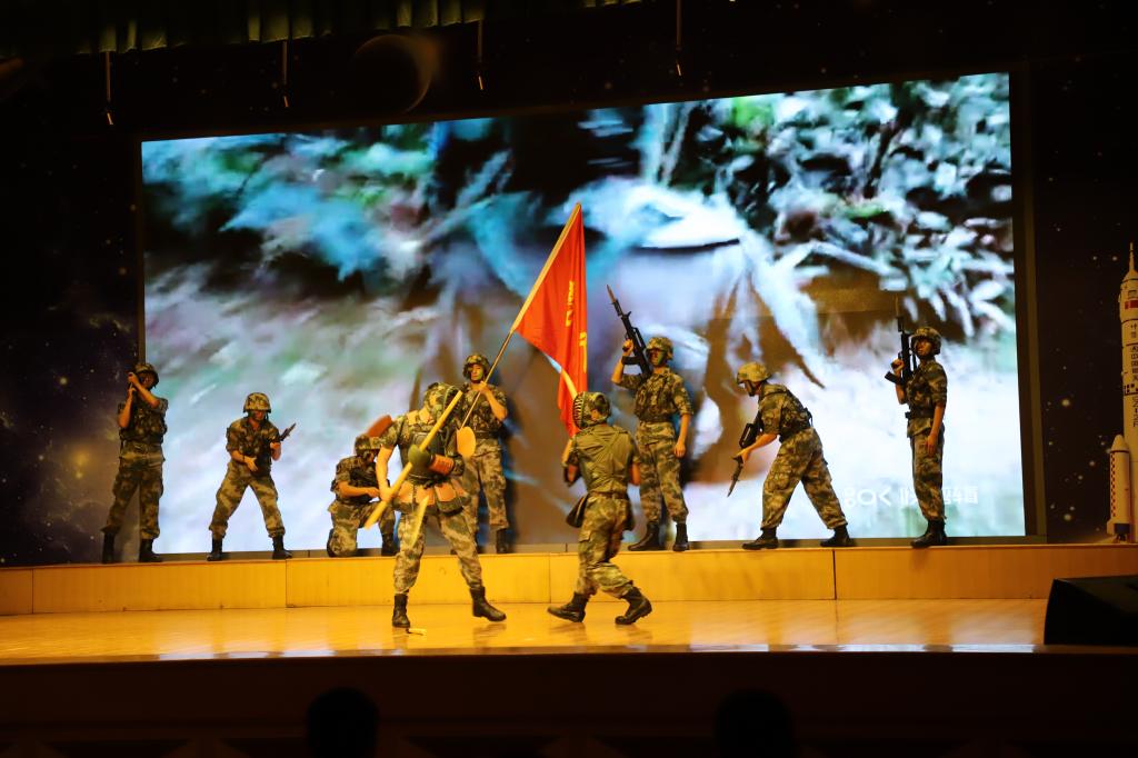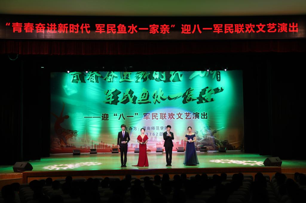 演出在歌伴舞《我的士兵兄弟》的深情演唱中开场。随后,部队带来的刺杀操表演、《威风锣鼓》、相声《军营欢迎你》、小品《出发之前》《套路》、歌舞表演《东西南北兵》,伟德国际1949官网大学生艺术团舞蹈团带来的《彩陶飞舞》《江山如画》《小伙四弦马缨花》、安洁带来的《军营里飞来一只百灵》、李清乐带来的《想家的时候》、杨瑾带来的《锦绣前程》,王辉、顾晓莹带来的《凤求凰》《扬鞭催马运粮忙》,杨帆等带来的情景剧《绣红旗》等赢得了在场官兵的阵阵掌声。歌伴舞《阳光路上》,唱出了希望军地携手、共建共育国防教育事业的美好愿望。最后,演出在全体人员齐唱《我和我的祖国》中圆满落幕。