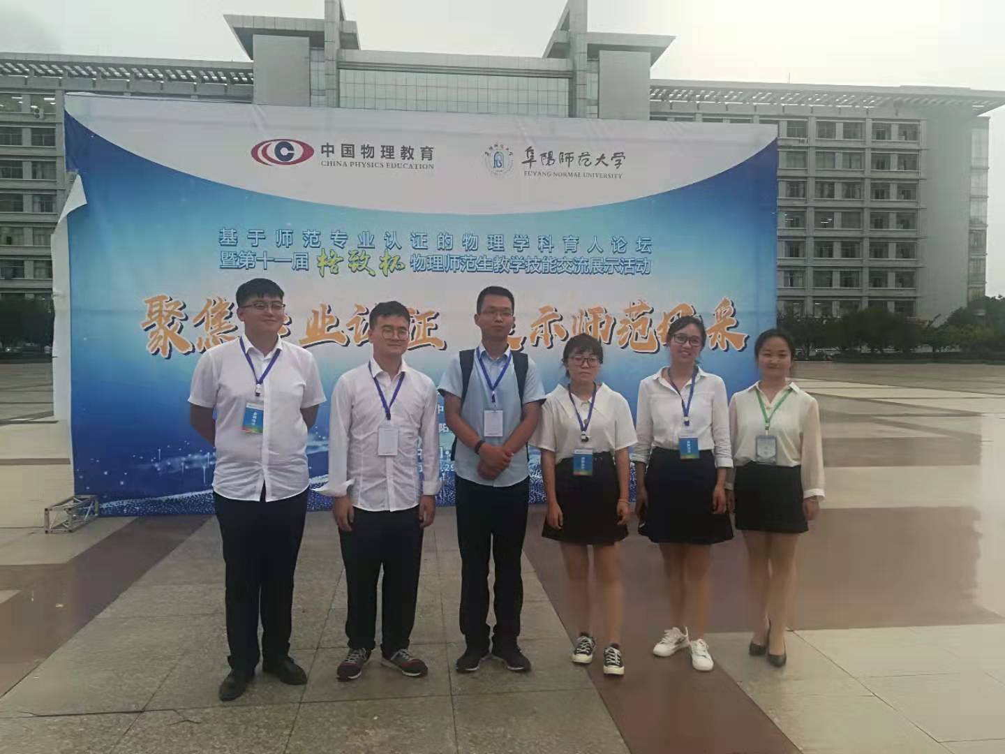 2019年7月29日—31日,由中国教育学会物理教学专业委员会、《物理教师》编辑部、《中学物理》编辑部联合主办的基于师范专业认证的物理学科论坛暨第十一届“格致杯”物理师范生教学技能展示活动在阜阳师范大学举行。本次交流会旨在于师范专业认证背景下培养和提高将于2020年毕业的硕、本学生的物理教学技能、自制教具与设计实验等方面的核心能力素养。指导老师白秀英、郭宝会带领伟德官网选手参赛。