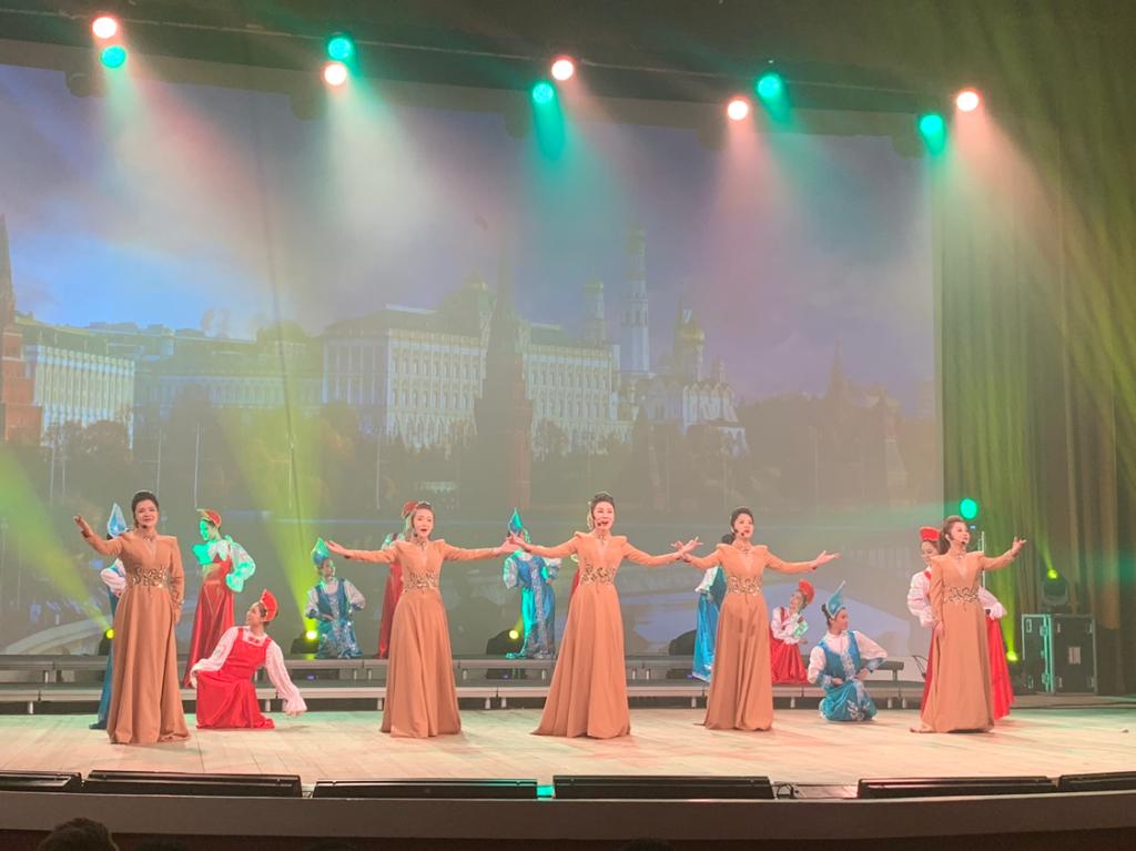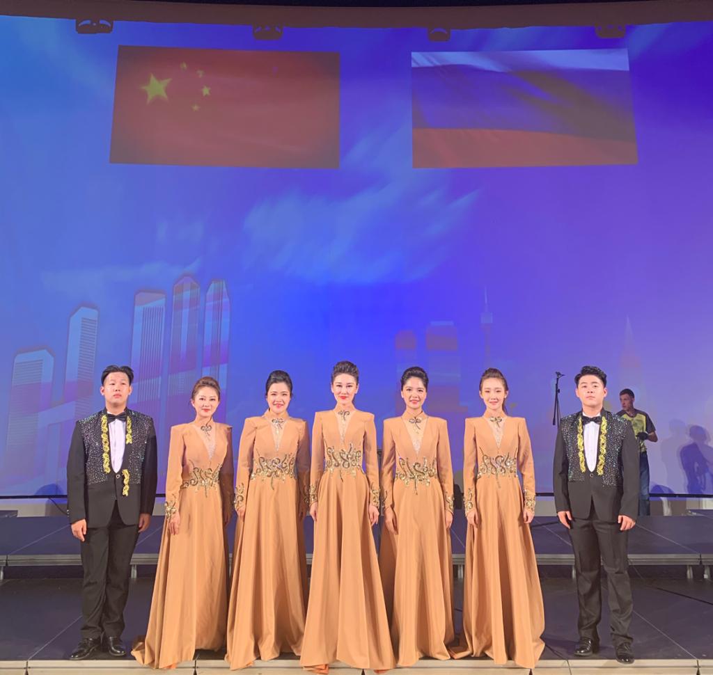 伟德国际1949官网莫斯科艺术学院声乐教师梁晶、张辽艳、徐敏、王若琪,学生任和、金美祺、杨鑫粤演唱的《俄罗斯民歌联唱》与现场观众引起互动、产生共鸣,赢得俄罗斯当地民众喜爱,掌声雷动,获得一致好评。