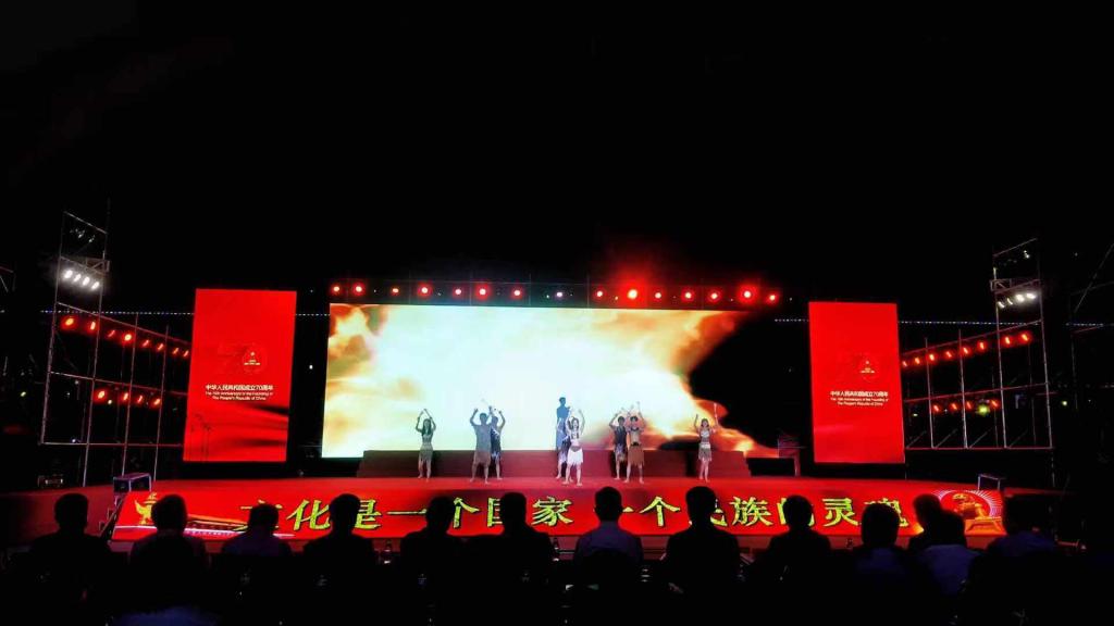 70年风雨兼程,70载壮丽辉煌。在新中国成立70周年之际,白水县庆祝中华人民共和国成立70周年文艺晚会“壮丽70年奋斗新时代”9月29日在白水县雷牙镇尧头村“福”文化广场举行。伟德国际1949官网音乐学院师生60余人赴白水县参加庆祝新中国成立70周年文艺晚会并成功演出。伟德官网师生与白水县人民共同回顾新中国“”风雨历程”“”激情岁月”“”新时代乐章”三个篇章的历史成就,共同歌颂祝福祖国繁荣昌盛。