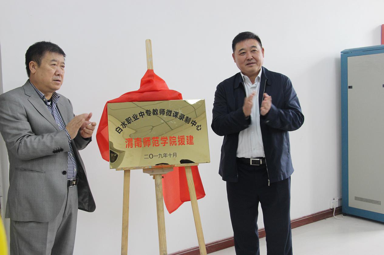 活动当天,校党委书记卓宇与白水县副县长张拴全共同为“白水职业中专教师微课录制中心”揭牌。
