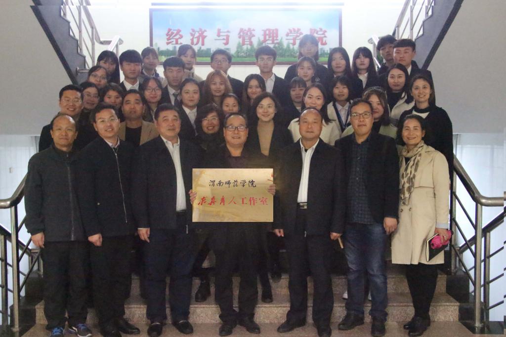 “求真育人”工作室负责人经济与管理学院党总支书记魏光民作表态发言。他首先向大家解释了“求真育人”工作室的取名缘由,并介绍了工作室前期建设情况和今后工作的思路打算。他说,“求真育人”工作室取名来自现代高等教育专家顾明远所言:“大学的使命就是求真育人”。“求真育人”工作室的工作目标和责任就是教育学生求真务实、健康成长、全面发展,做合格的“四有”新人。从今年4月以来,经济与管理学院在微信公众号上开设了“书记小喇叭”栏目,到目前已经播出31期,内容涉及思想教育、基层党建、主题教育、安全教育、地方文史等方面。节目播出后,收到了良好的教育效果和社会反响。据不完全统计,“书记小喇叭”栏目近期播出的节目在腾讯网点击观看人数达10000余人次,在学院微信平台师生浏览量达8000余人次,有的节目被大量转发,《渭南日报》等公众平台也转发了部分节目。魏光民表示,“求真育人”工作室正式挂牌后,标志着“书记小喇叭”栏目已经由以前的个人兴趣爱好转变为一种责任担当,由个人的自发行为转变为组织交给的一项使命,由一个学院的行为转变为全校的集体项目。因此,工作室将重新筹划,组织全校热心学生思想政治教育工作的同仁共同开展大学生思想政治教育工作的研究和探索。特别是,将从内容和形式上丰富、创新“书记小喇叭”栏目,不断为师生献上文化、教育的精神盛宴,力争将这一栏目打造成伟德官网校园文化建设的特色平台和重要阵地。