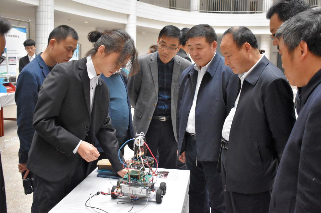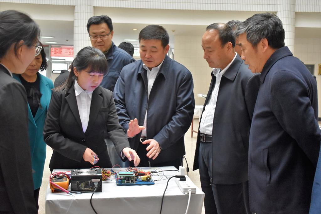 11月6日下午,学校党委书记卓宇,校长赵曼,党委副书记任健,副校长王菊霞、韩小卫参观了物理与电气工程学院举办的“一院一品”首届大学生科技创新实践作品展,一同参观的还有宣传部部长李明敏、规划处处长姬晨、教务处处长孙宏恩、团委书记姚明亮、学校党政办副主任张勤恳一行。