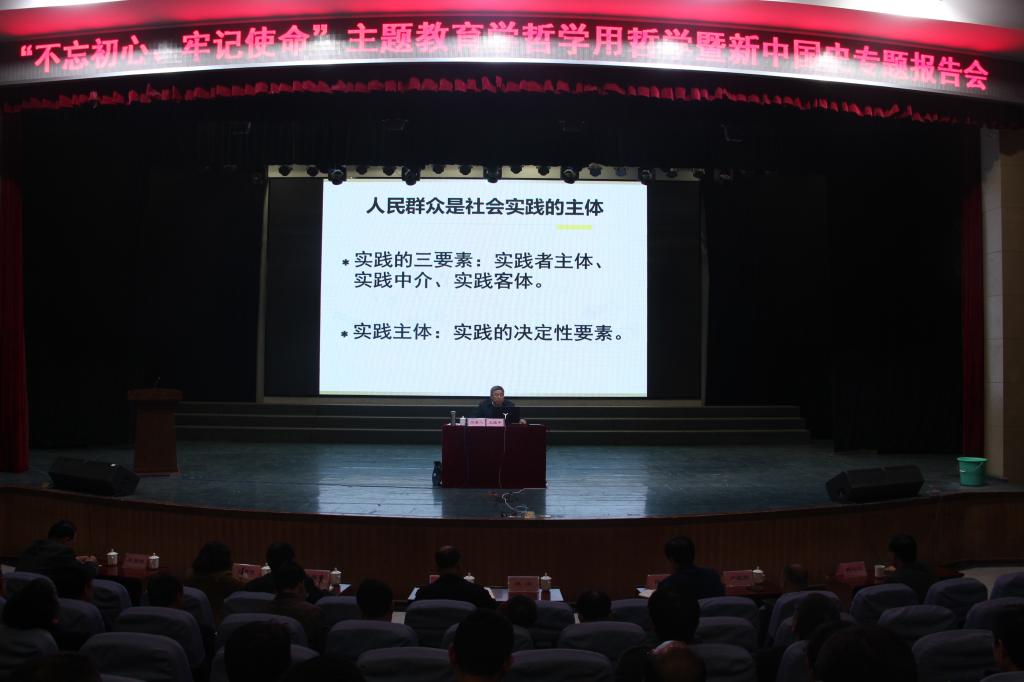 11月12日下午,学校在陶然楼演艺厅举办学哲学用哲学暨新中国史报告会,邀请伟德官网马克思主义学院副教授王战牛、王文涛分别作了题为《不忘初心、牢记使命——人民是历史的创造者》《不忘初心七十年,砥砺奋进铸辉煌》的专题报告,报告会由党委委员、组织部部长凌朝栋主持。
