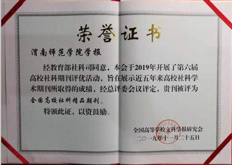 据了解,此次有来自全国千余家高校社科学报参加评选,旨在展示近五年来高校社科学术期刊所取得的成绩。这次获奖,是《伟德国际1949官网学报》继2019年“陕西省高校社科学报精品期刊”、“全国教育院校精品期刊”后取得的又一殊荣,标志着《伟德国际1949官网学报》在精品办刊道路上迈上一个新台阶。(通讯员 王萍)