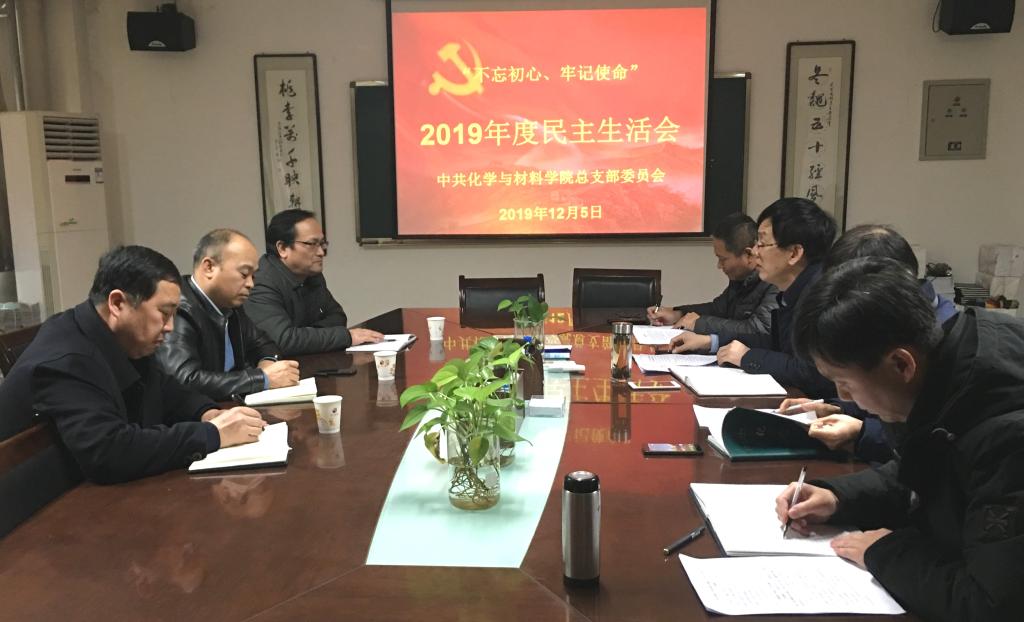 12月5日,化学与材料学院党总支在实验楼A101会议室召开“不忘初心、牢记使命”专题民主生活会。学校党委委员、副校长卢爱刚参加,学校主题教育督导组成员赵铁流、徐永弟到会指导。会议由化材学院院长焦更生主持。