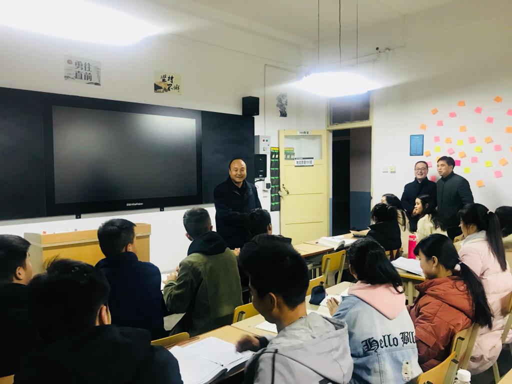 随后,赵曼一行深入教学楼,对西岳校区学生的晚自习状况进行检查。走进物流管理191、经济学191教室,了解了学生学习情况,看到西岳学生能全部坚持晚自习制度,赵曼希望同学们能够明确学习目标,认真学习功课,深入了解所学专业的前景和学术前沿,做好考研信息的搜集与整理,规划好大学四年的学业;希望同学们能够尽快适应大学生活,多与辅导员及代课老师沟通交流,及时解决学习和生活中所存在的问题;希望同学们多关注西岳微信公众号,及时收看“书记小喇叭”,通加强各方面学习,接受教育,增长才华。同时,希望大家常怀感恩之心,感恩师长、感恩同学、感恩学校,充实度过大学四年,不忘初心,做奋斗者,无愧渭师人,回馈全社会。