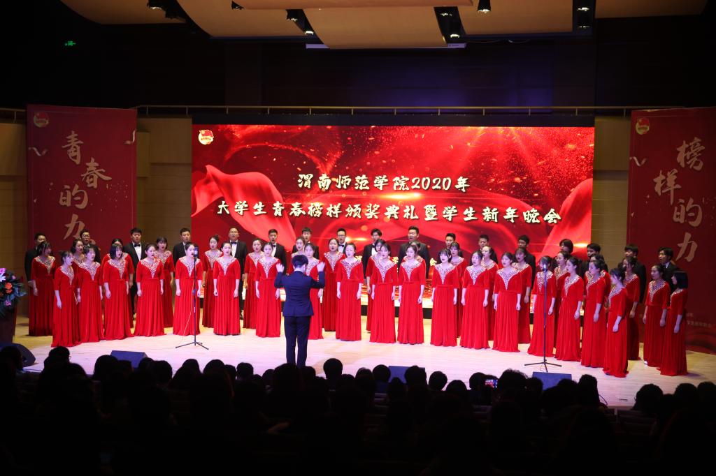 颁奖和晚会围绕“青春的力量”“榜样的力量”和“国家力量”为主旨,活动以年度青春榜样事迹展播、宣读颁奖辞、领导颁奖、获奖榜样谈感受和新年文艺演出等多个环节交错进行,相互照应、相得益彰。由各二级学院学生代表共同参演的充满青春、活泼、向上的热情地舞蹈《青春无畏》拉开帷幕,由各二级学院团总支、各学生组织参演的节目也给大家留下美好印象,《和祖国在一起》《爱的华尔兹》《我爱你中国》《我的祖国》和《那段时光》等体现家国情怀、青春向上和奋进追梦的学生文艺节目,展现出伟德官网普及艺术教育的良好成果。