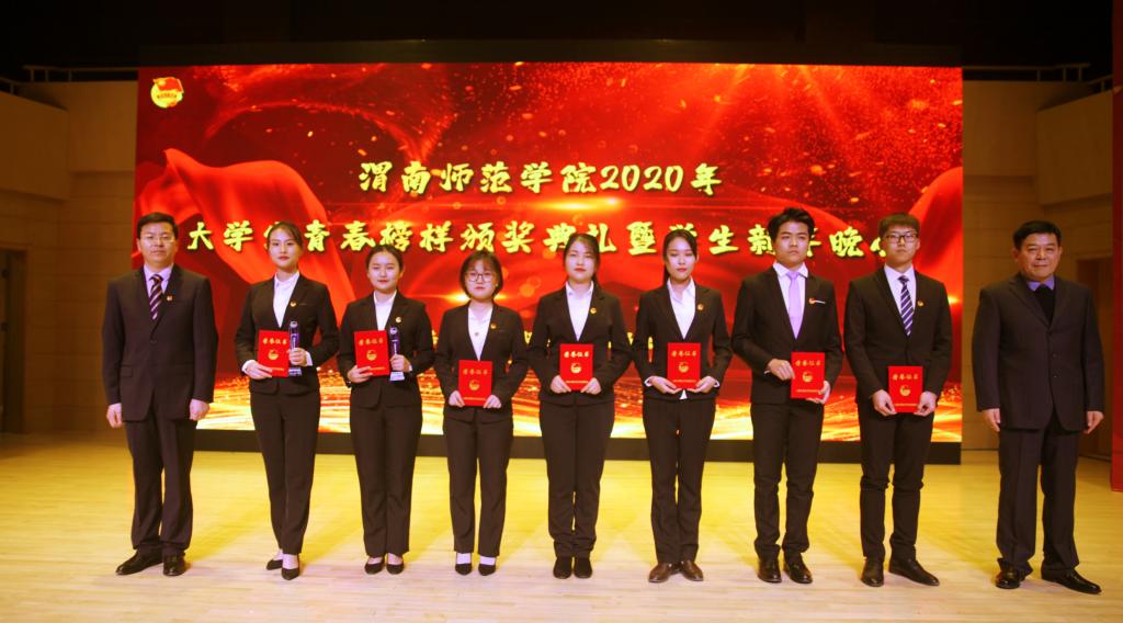 颁奖典礼中,青春榜样们的事迹介绍、学习生活视频展播和组委会给予榜样颁奖致辞,无不感动着在场的青年学生。年度青春榜样自强不息、持之以恒的奋斗精神,甘于奉献、热心公益的高尚品格,开拓创新、矢志奋斗的先进事迹,与时俱进、勇攀高峰的青春风貌,通过隆重的颁奖典礼展现出新时代伟德官网大学生的积极向上、努力拼搏、勤奋好学良好精神风貌和卓越风采。学校领导和学团部门负责人分别为10名青春榜样12名青春榜样提名奖获得者颁发奖杯和荣誉证书。