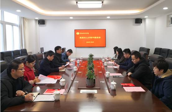 1月8日下午,渭南市委组织部副部长、市考核办副主任崔希文,渭南市委组织部人才科干部马茜一行来伟德官网慰问入选渭南市高层次人才的王芳、周小强、杨晓菲、杨妮、刘峰等5位博士。副校长韩小卫,人事处处长景根杰及5位博士参加了会议,会议由党委组织部副部长、人才办主任董康军主持。
