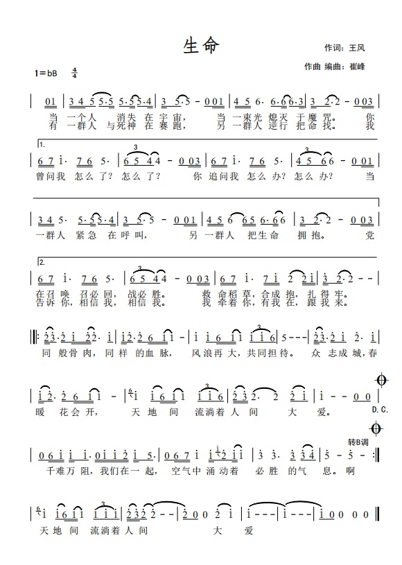 歌曲《生命》是由王风作词、崔峰作曲编曲、小凡演唱的一首抗击新型肺炎疫情主题歌曲。著名作家、陕西省作协秘书长李子白先生为歌曲题写歌名,非遗传承人、著名剪纸艺术家艾晓、艾宇恒为歌曲设计创作剪纸海报。歌曲制作过程中得到了莫斯科艺术学院师生的大力支持,发布后受到社会高度关注。(通讯员 高梦涵 崔峰)