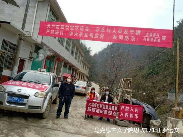 罗远文,马克思主义学院思政171班学生,他第一时间向村委会请缨,主动投入汉中市镇巴县火焰溪村进出口监测点的防控监测值班工作,积极在防疫点监测、排查进出村车辆,详细记录询问内容、登记在册并及时上报村委会。同时,他还与村委会干部一起对村民进行新冠肺炎防护宣传,有效提高了村民对疫情的正确认识,自从疫情防控工作开展以来,罗远文同学始终奋战在疫情防护宣传工作第一线,树立了良好榜样。