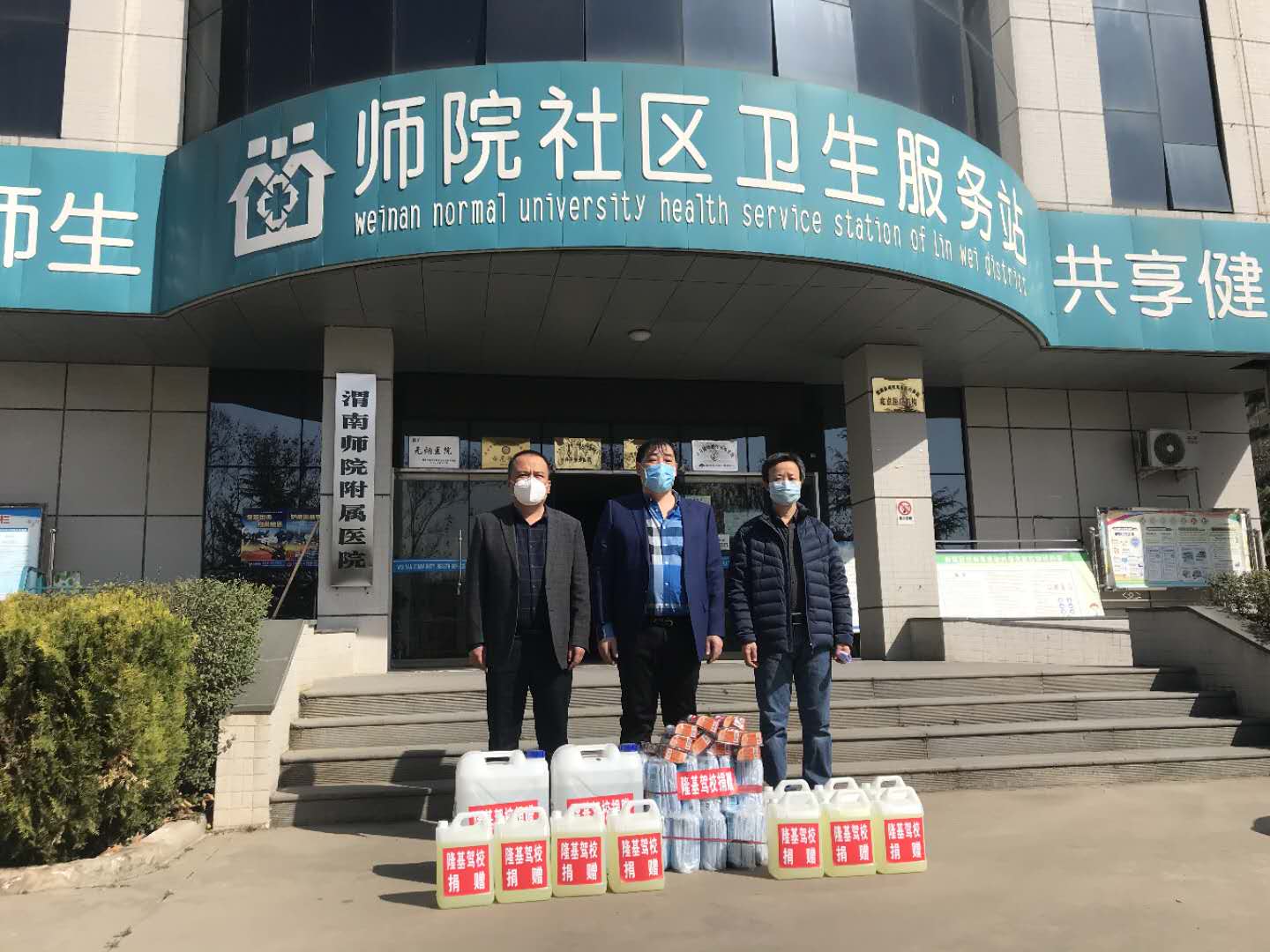 资产经营有限责任公司董事长郭音、附属医院院长段楚雷代表学校接受了捐赠,并对渭南隆基驾驶员培训学校对伟德官网疫情防控工作的大力支持表示衷心感谢,对企业在疫情面前勇于担当的大爱精神表示敬佩。