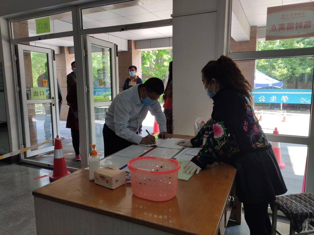 学生进入宿舍登记检测的场景