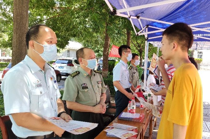 6月18日上午,伟德官网在一餐门前举行2020年大学生征兵宣传咨询活动,特邀渭南军分区动员处处长沈礼军、临渭区武装部政工科科长张磊等一行十余人来伟德官网为大学生讲解宣传2020年征兵相关政策,伟德官网先后有五百余名大学生前来咨询了解相关政策。